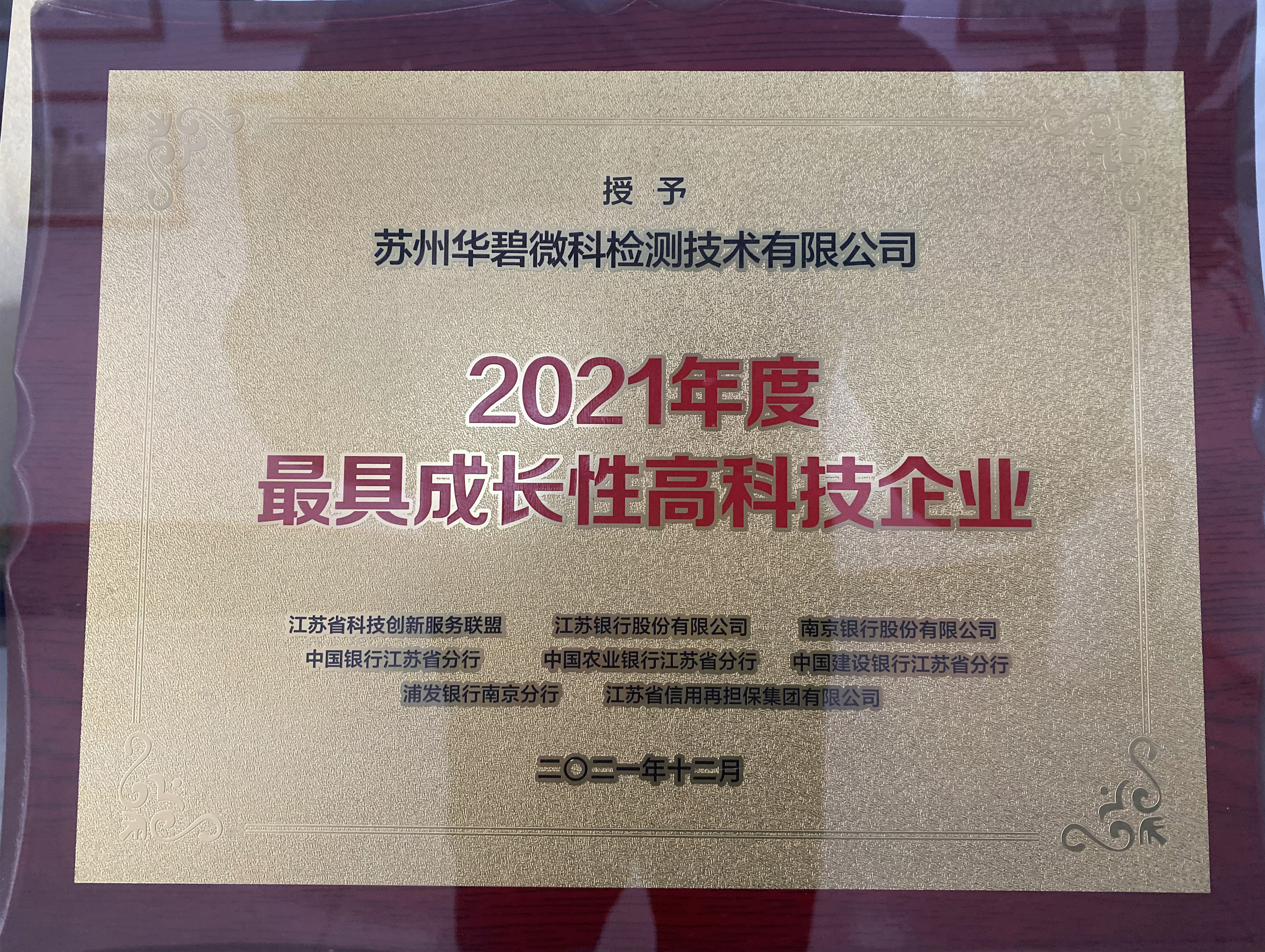 近日,江蘇省2021年度“* 具成長性高科技企業(yè)”名單公布,蘇州華碧微科檢測技術有限公司憑借深耕科技領域多年所積累的綜合實力成功上榜。此次評選為2021年度江蘇省* 具成長性高科企業(yè),標志著蘇州華碧微科檢測技術有限公司在科技研發(fā)工作方面邁上一個新的起點和高度。