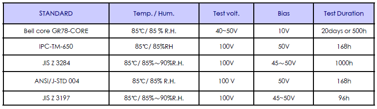 表面絕緣電阻(SIR)測試是通過在高溫高濕的環境中持續給予PCB一定的偏壓,經過長時間的試驗,觀察線路間是否有瞬間短路或出現絕緣失效的緩慢漏電情形發生。