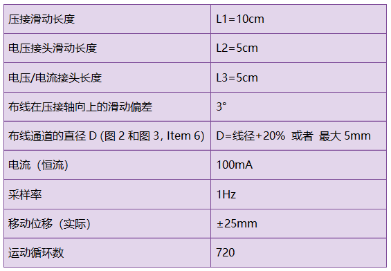 成品的預處理和測量線可帶可不帶運動單元。每次測試的目的是盡量無應力安裝(沒有負載施加到端子上)。端子不能從連接器里移除。